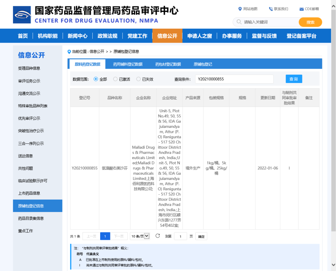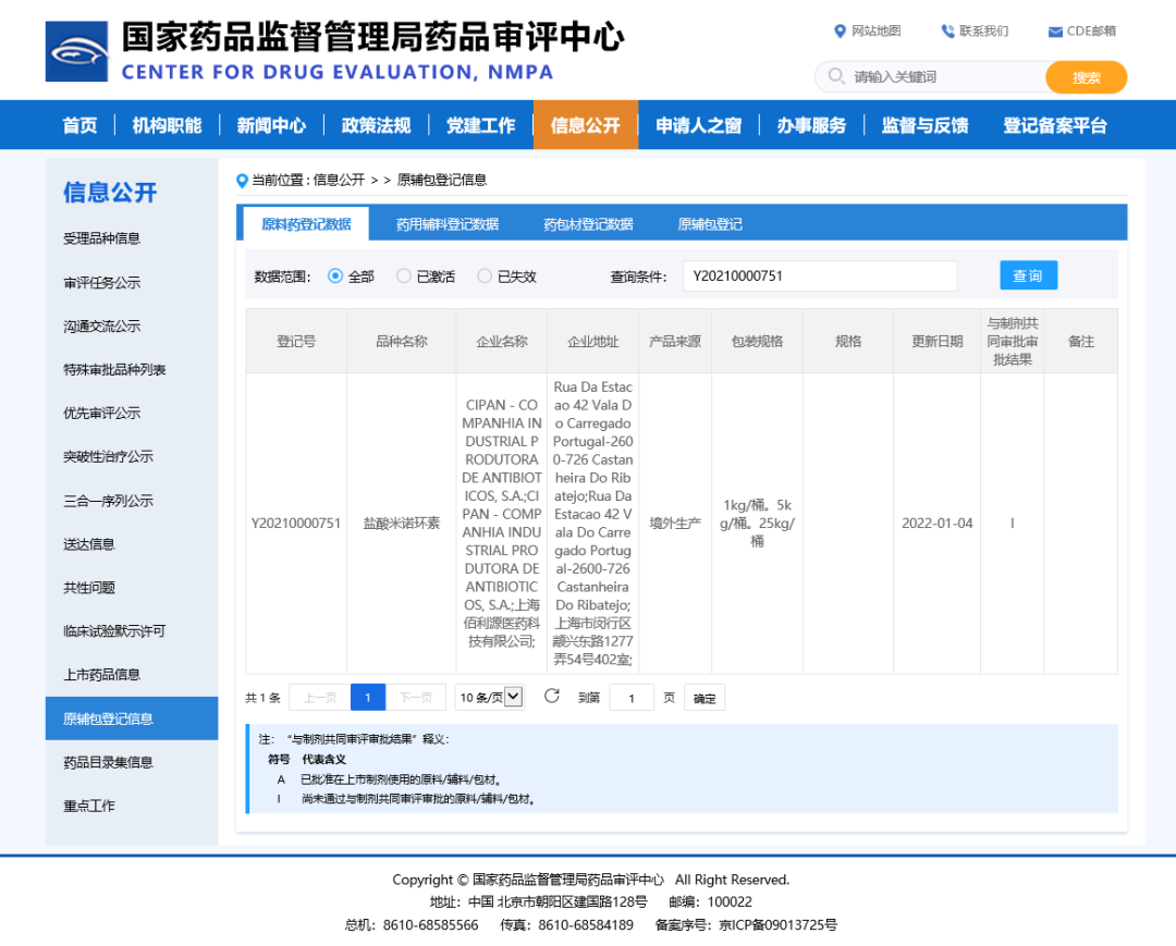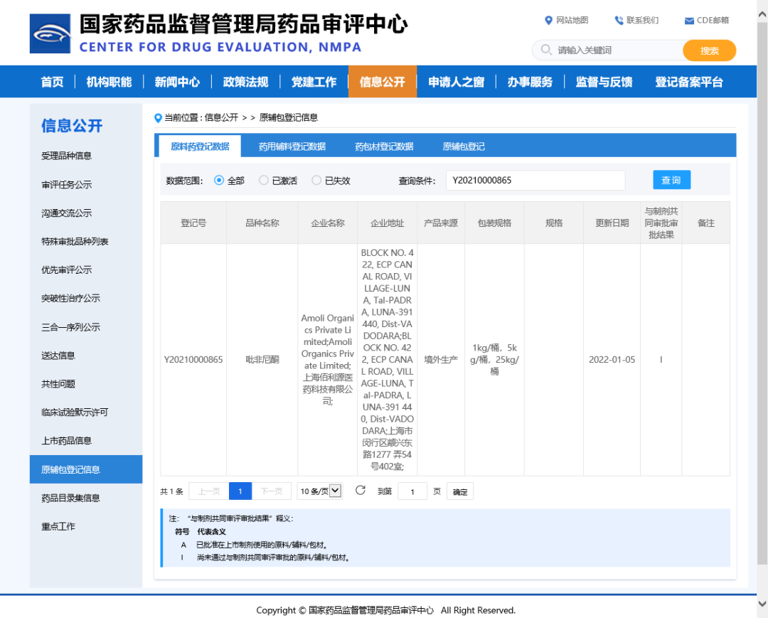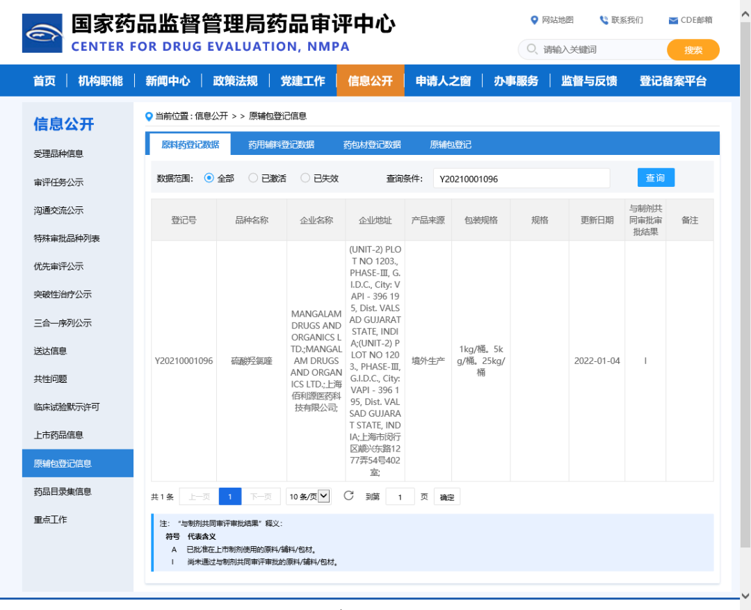 我司积极进行原料药审批,几乎每月均有新增批准品种。