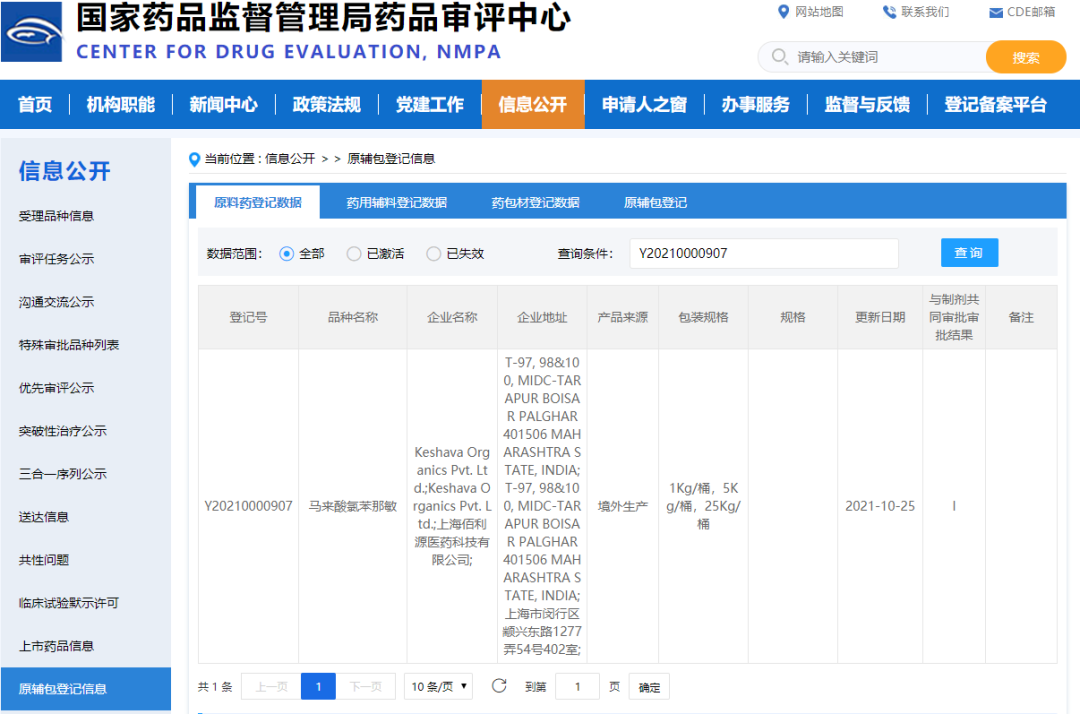 我司积极进行原料药审批,几乎每月均有新增批准品种。